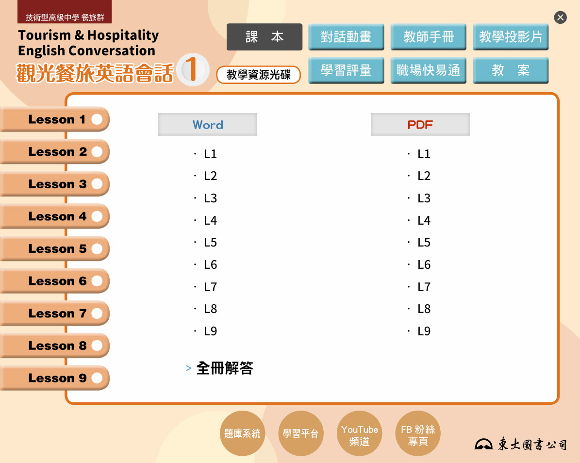 112學年 技術高中命題光碟、教學光碟 三民東大版 觀光餐旅英文 第1冊 題庫光碟、教學光碟