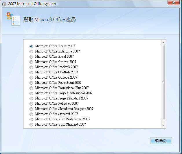Office 2007 SP2 Enterprise:(請執行;"安裝Office Enterprise",就可以全部安裝)