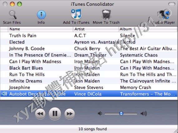 • ITunes Consolidator v1.8 MacOSX 英文正式版(幫你找回iTunes中被刪除的歌曲軟體)