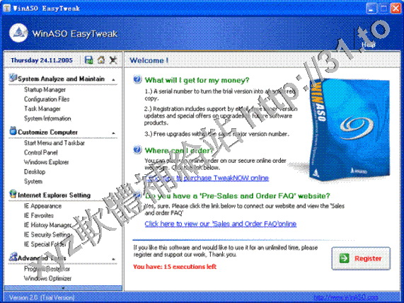 WinASO EasyTweak v3.0 英文正式版(系統優化軟體)
