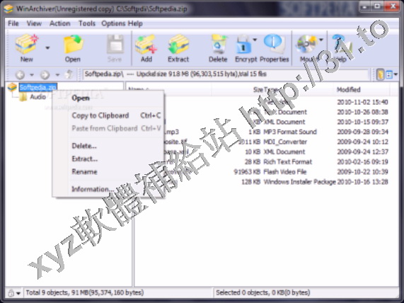 打開,解壓縮zip,rar,7z,和其它格式的壓縮文件。WinArchiver支援所有常見的壓縮文件
